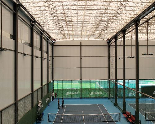 Case Introduction: Electric retractable tent for tennis court located in Kunming Sports Park, Yunnan, covering an area of 10000 square meters